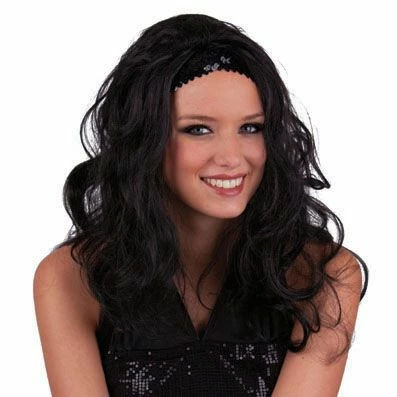 092. Pruik Go Go Zwart Met Zwarte Glitter Band
