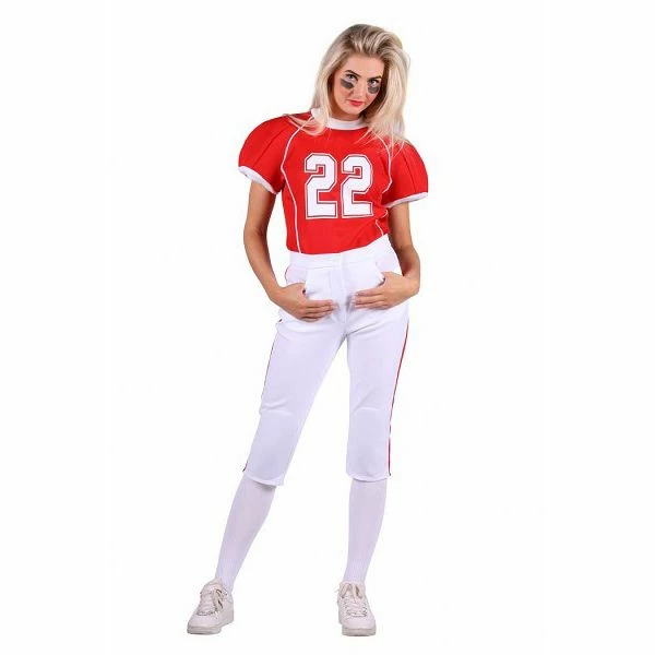 Deze American football girl is een zeer mooie kwaliteit kostuum voor een sportieve dames groep bestaande uit shirt en broek .