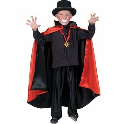 Mooie lange cape met kraag die je met de zwarte of rode kant kunt dragen.