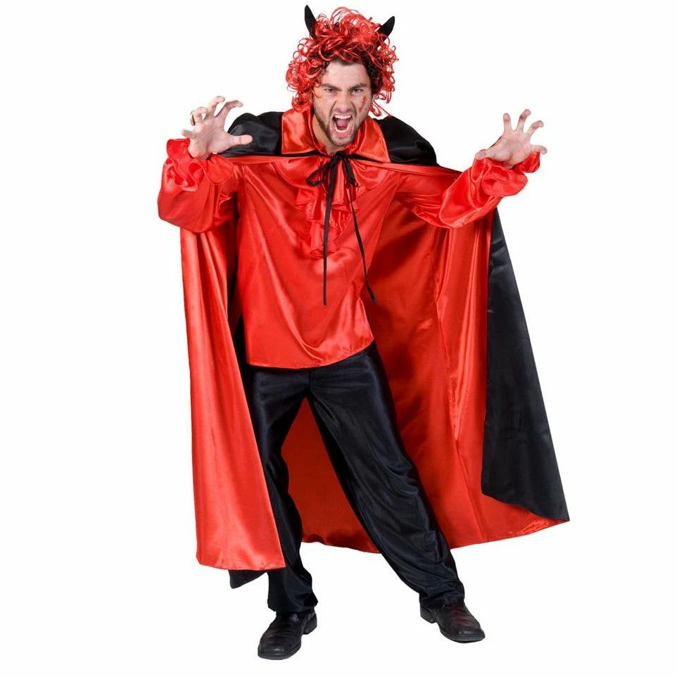Mooie halflange cape die je als zwarte of rode cape kunt dragen.