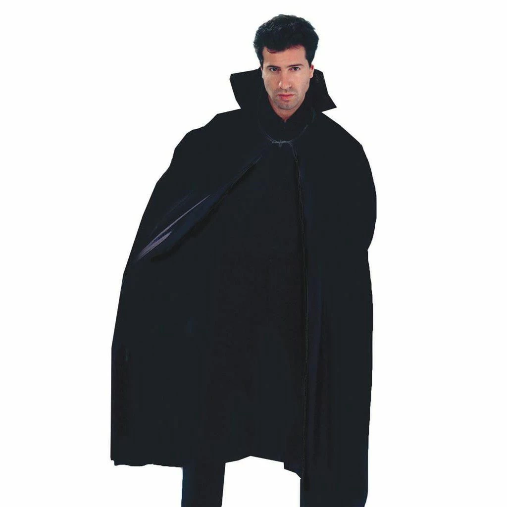 Mooie halflange zwarte cape met grote kraag.