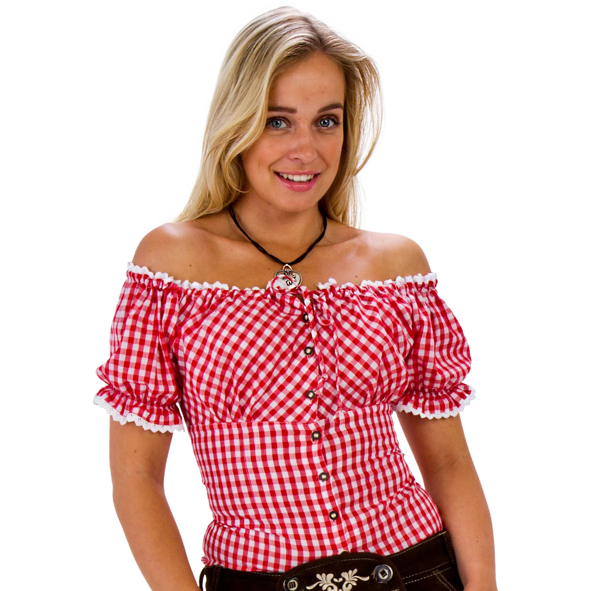 Carmenblouse rood / wit.