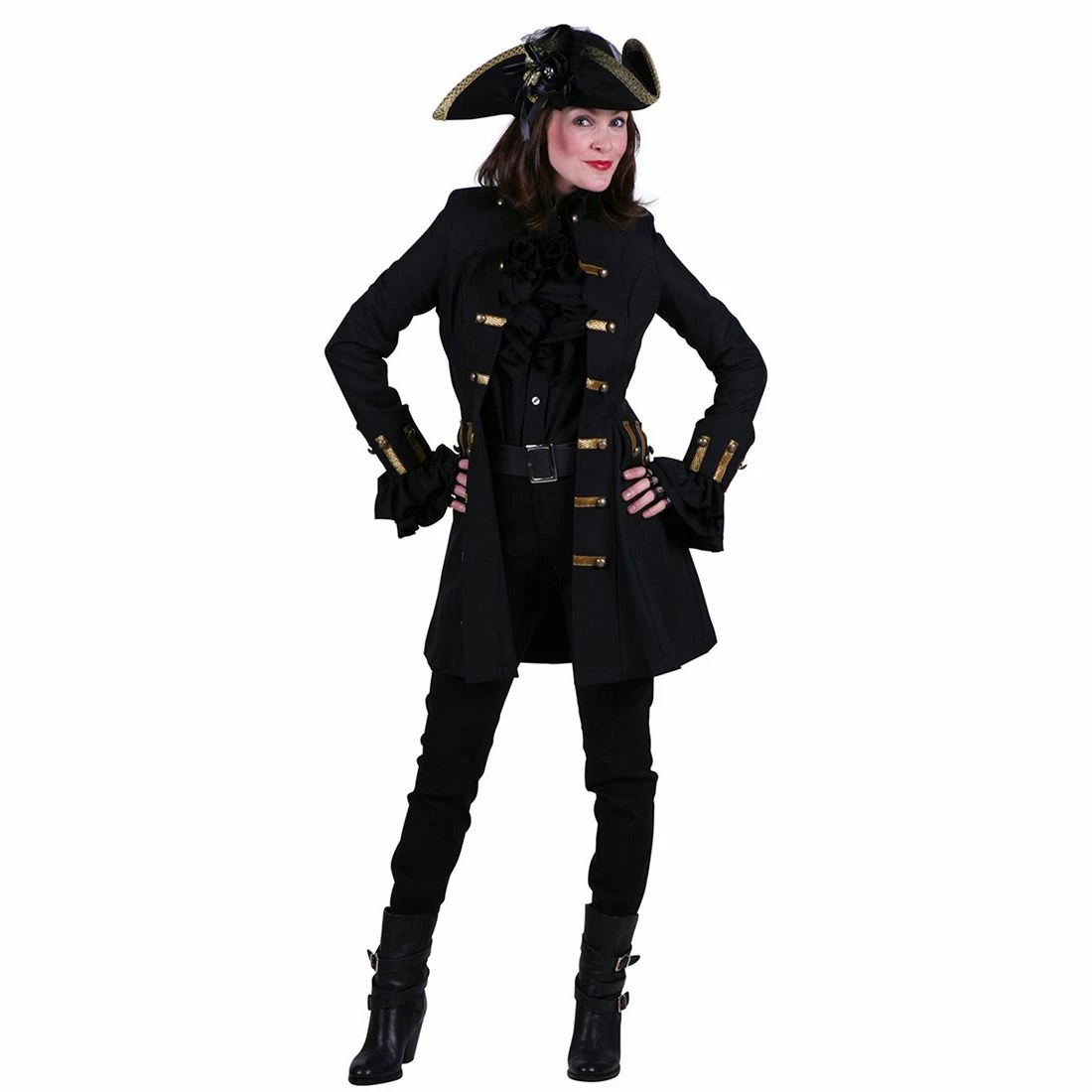 Prachtige luxe jas in de kleur zwart, afgewerkt met gouden accenten.