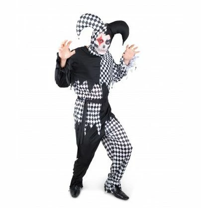 Ga in dit kostuum verkleed als enge harlequin! Hiermee jaag jij iedereen de stuipen op het lijf!