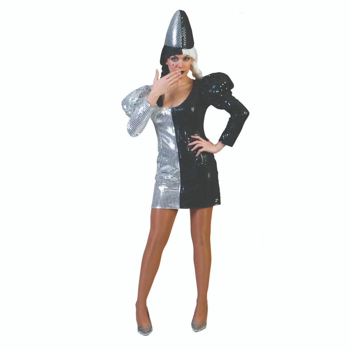 Prachtige disco jurk met zwarte en zilveren glitters.