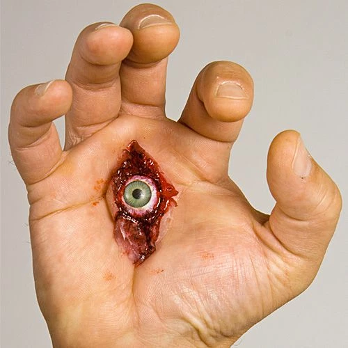 U gebruikt het kunstoog in combinatie met Grimas Derma Wax of met een latex Quasimodo ooglap (Grimas Latex Neuzen en Sets no. 13). Dit kunststof oog wordt per stuk verkocht in een doosje.