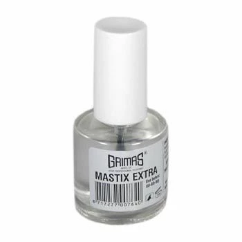 Mastix Extra is te verwijderen met Grimas Mastix Remover, eventueel nareinigen met Cleansing Cream of Make-up Remover.