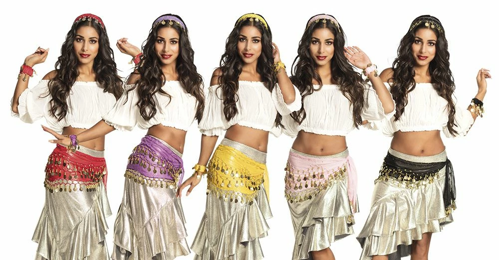 Leuke gele gypsy set; bestaande uit hoofdband, ceintuur en armbanden.