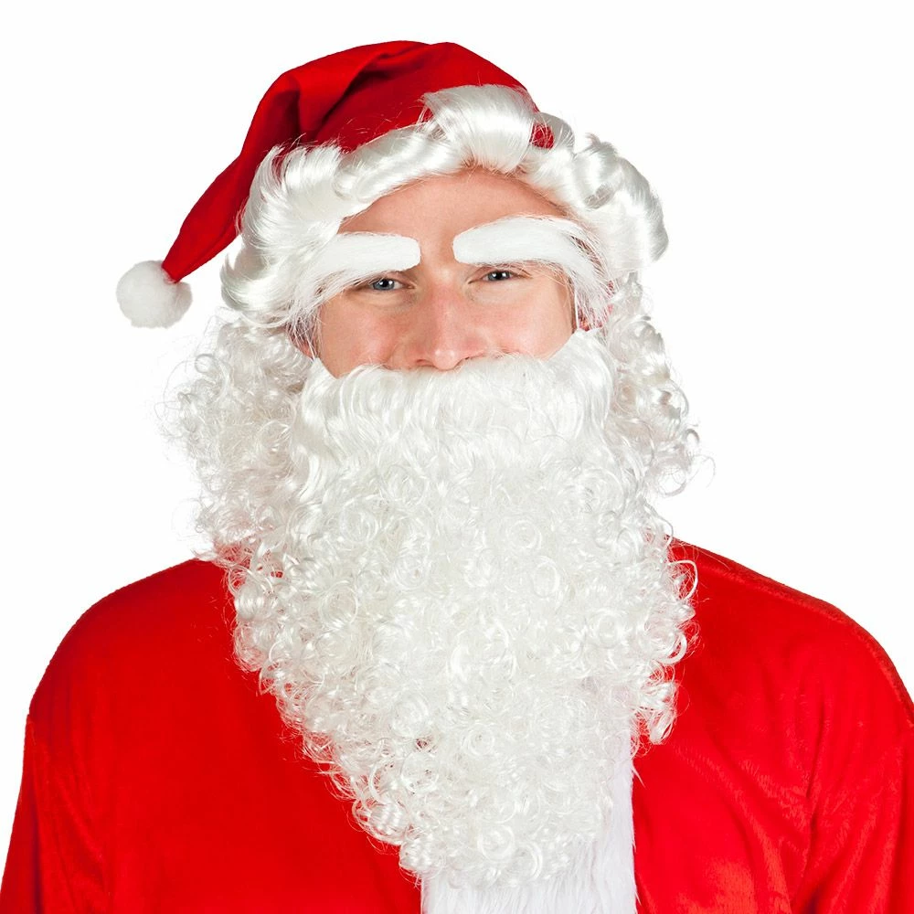 Niemand zal je herkennen achter de kerstmuts, pruik, baard en wenkbrauwen.