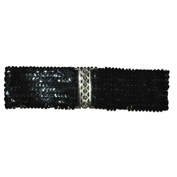 Deze riem is zo elastisch dat het bestemd is voor bijna elke maat. Mooie riem met zwartkleurige pailletten.