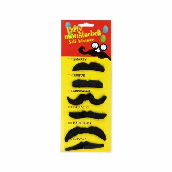 Kaart met 6 verschillende snorren van zwart kunsthaar.