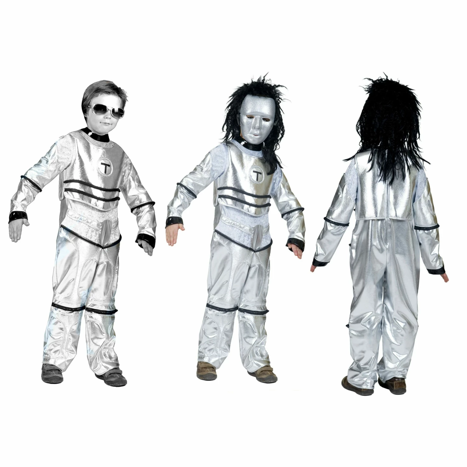 Deze aliën ruimtepakken voor carnaval zijn er voor het hele gezin. Deze space pakken van zilver zien er futoristisch uit. Het lijkt wel of deze maanmannetjes zo uit hun UFO zijn gestapt. Het leuker is dat deze ruimtevaartpakkjes voor space aliëns er zijn voor het hele gezin.