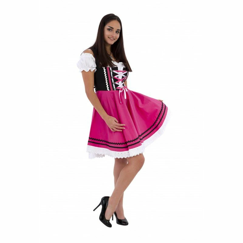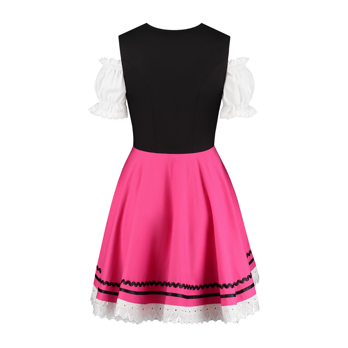 2-delig Dirndl jurkje in de kleur zwart met roze.