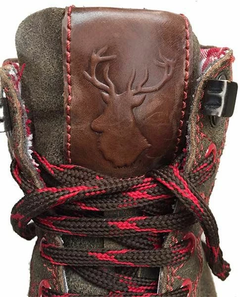 Stijlvolle Trachterboots donkerbruin met mooie rode stiksels.