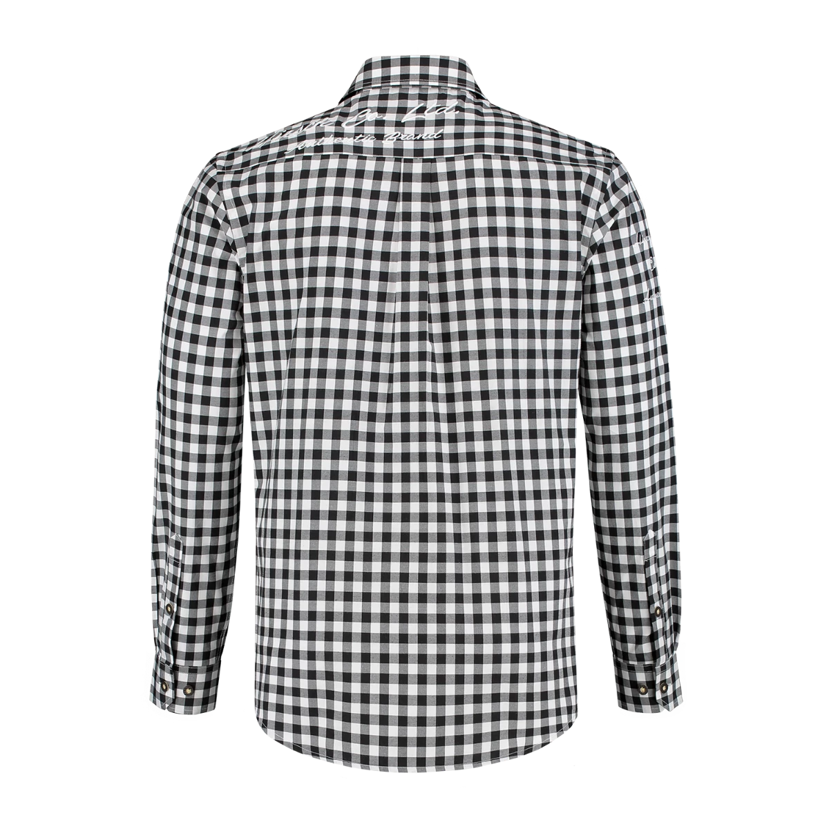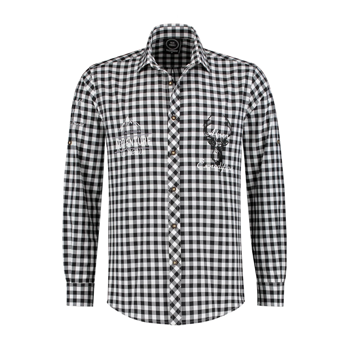 zwart/ wit geblokt met mooi borduursel. Lange mouwen, met de mogelijkheid om deze op te rollen.