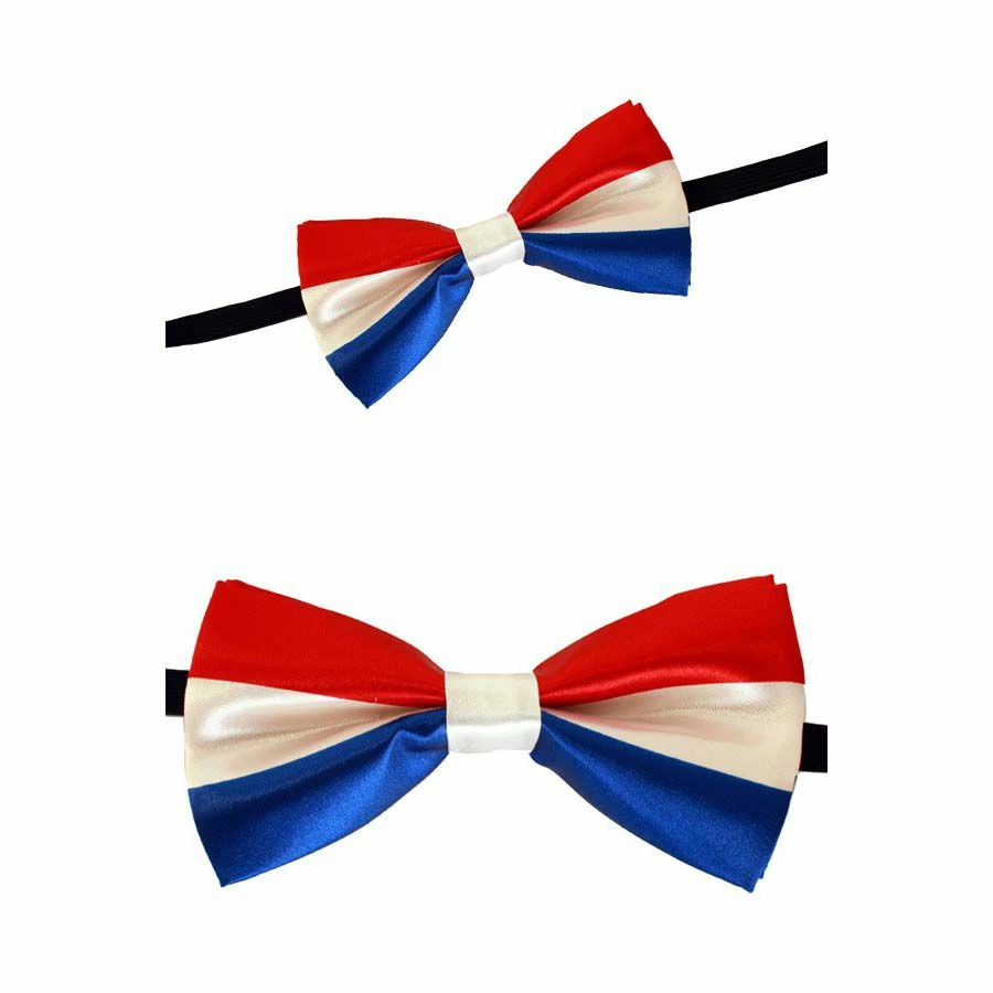 Mooie satijnen vlinderstrik rood/wit/blauw.