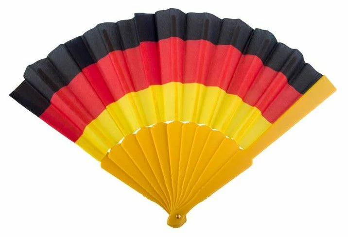 Leuke handwaaier in de kleuren van België en Duitsland.