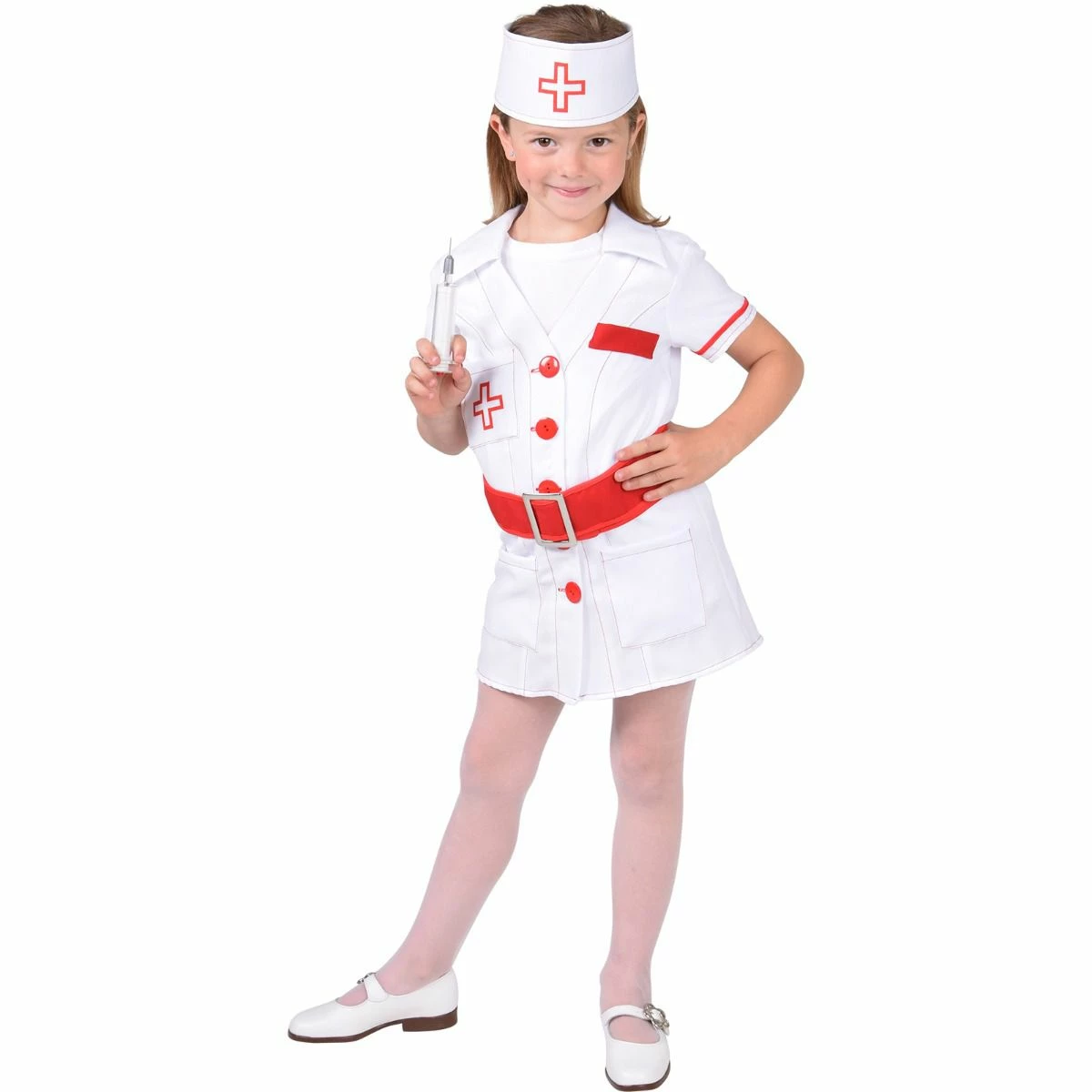 Inclusief jurk, riem en hoofdkapje.